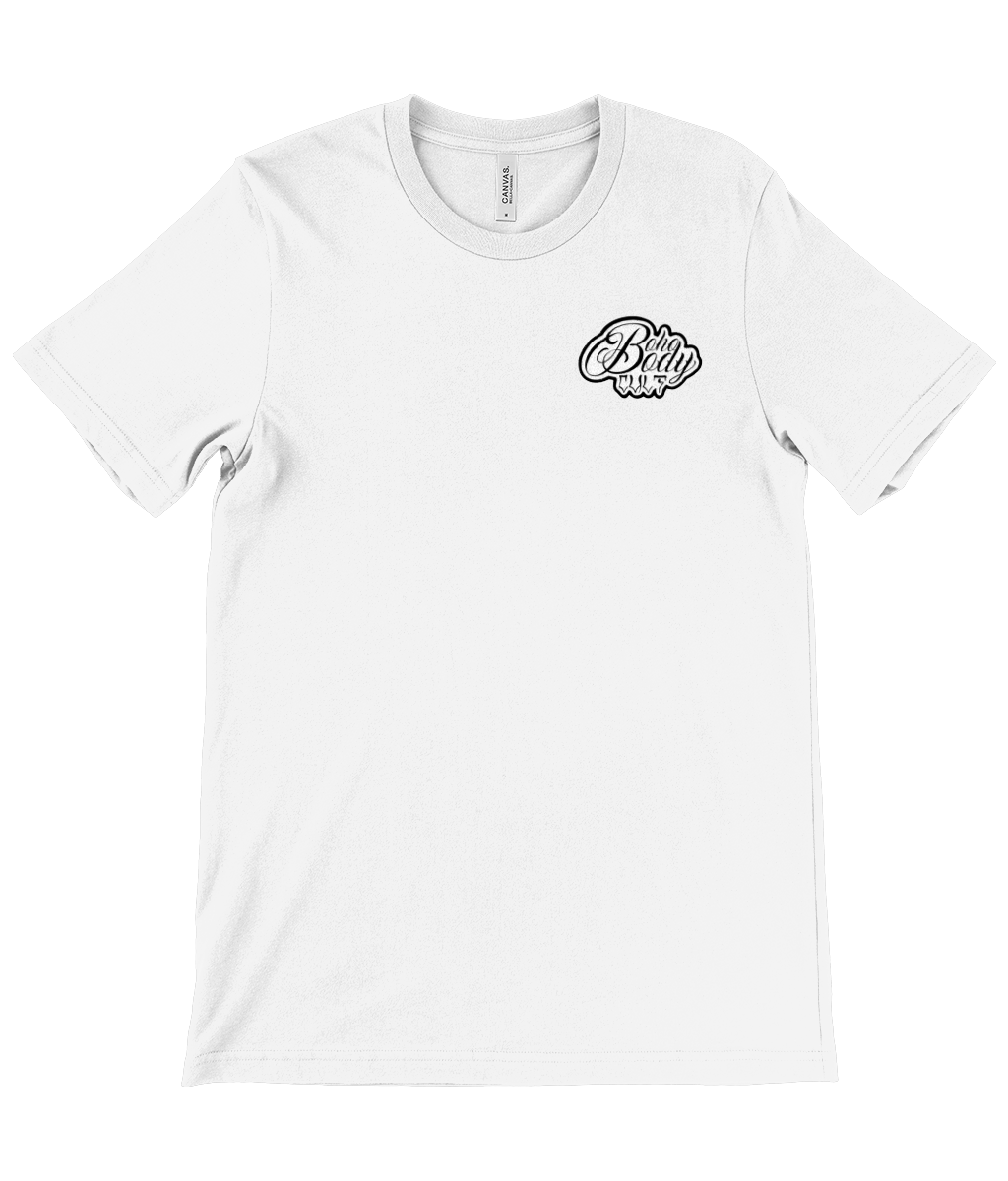White tee with the black and white logo on the left chest and upper back with a unisex fit. The BLACK and WHITE Logo Tee is classic styling in a classic fit.